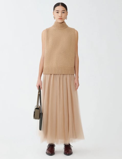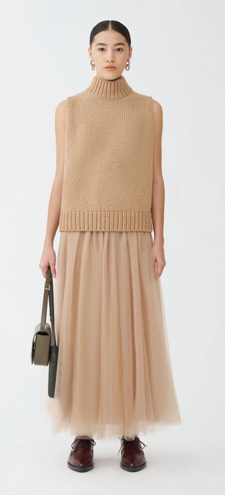 Un maglione morbido in lana o cashmere è il capo cocoon per eccellenza, ideale per le giornate più fredde. Le tonalità neutre come crema, grigio o beige lo rendono estremamente versatile. Indossalo con una gonna plissettata per un look romantico o con pantaloni sartoriali per un effetto più formale.